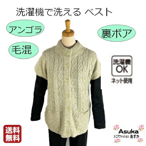 【洗濯機OK】【アンゴラ混】【裏ボア】アンゴラ混 裏ボア ベスト 婦人ボア ベスト 軽い あたたかい 前あき 前ボタンおしゃれ M L シニア ファッション 60歳代 70歳代 80歳代 90歳代 誕生日 クリスマス プレゼント 年末年始 お土産 ギフト 病院 施設 室内着 送料無料