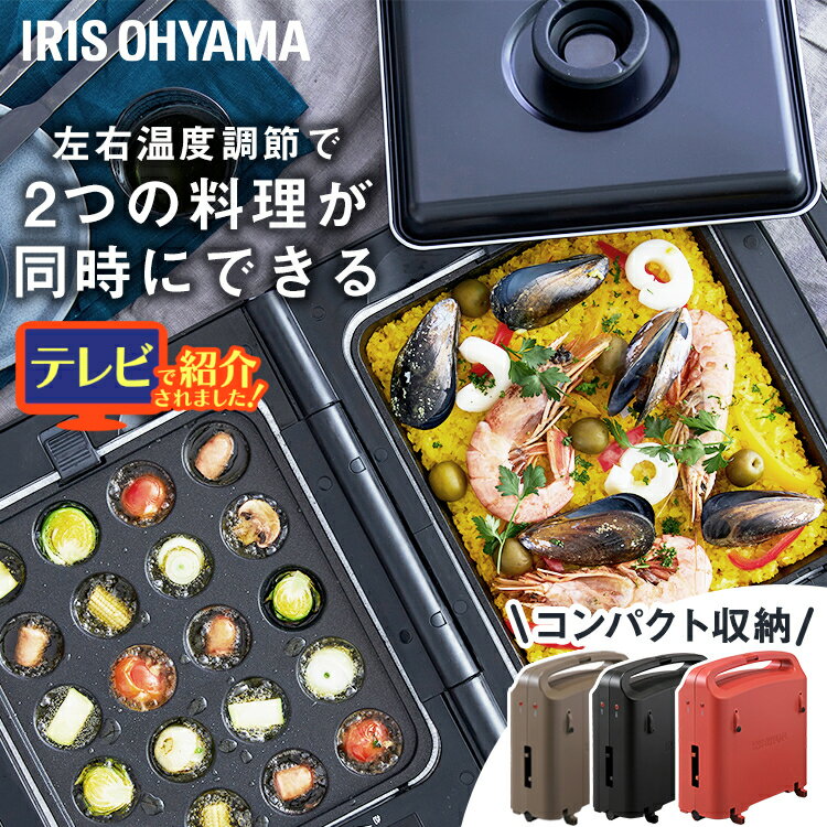 【12/1限定ポイント2倍】両面ホットプレート DPOL-301-B DPOL-301-T DPOL-301-R ブラック ブラウン レッド 送料無料 ホットプレート 両面 家電 パーティ たこ焼き お好み焼き 調理器具 キッチン家電 同時調理 家族 プレート アイリスオーヤマ