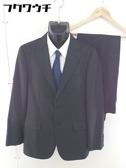 ◇ COMME CA ISM コムサイズム 総裏地 シャドーストライプ シングル パンツ スーツ 上下 サイズL ブラック メンズ 【中古】