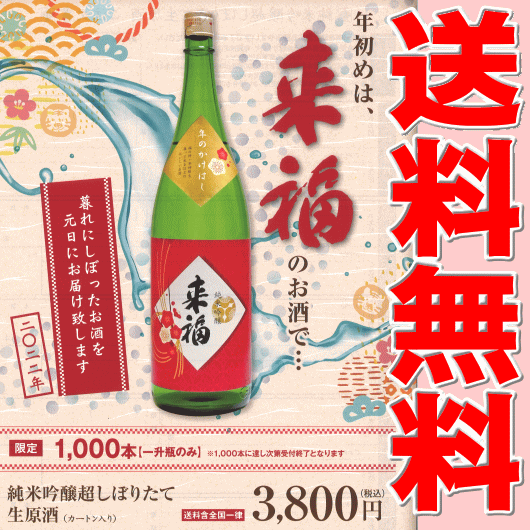 【お年賀】【送料無料】【予約限定】来福 純米吟醸 超しぼりたて生原酒 年のかけはし 1800ml 茨城県筑西市 来福酒造 らいふく