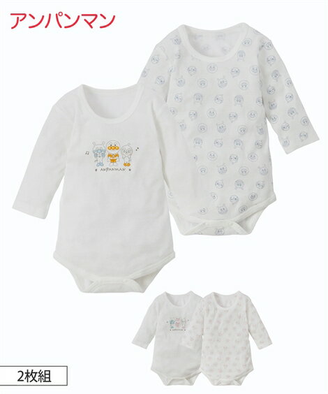 ボディスーツ ベビー アンパンマン コットンフライス 長袖 2枚組 ベビー服 子供服 男の子 女の子 サックス系/ピンク系 身長70/80/90cm ニッセン nissen
